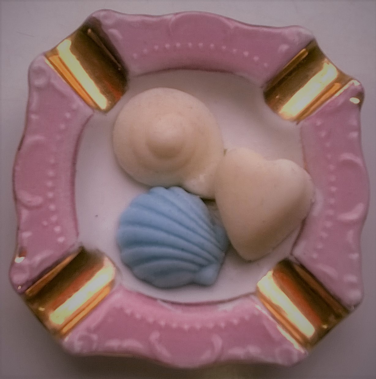 Dear friends, I present you the small soaps I made using Melt and Pour technique. They decorate the ashtray of my office. Do you like them?